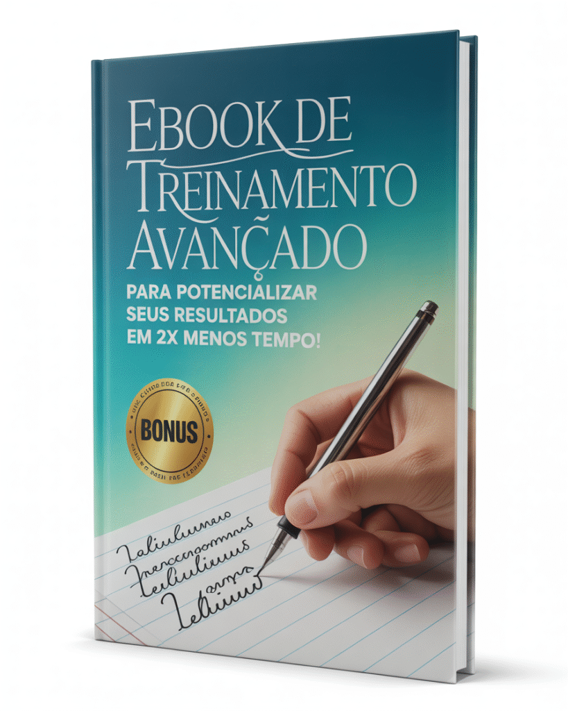 Ao adquirir o Método Caligrafia Fácil, você recebe GRATUITAMENTE um ebook completo com dicas práticas para melhorar sua caligrafia, técnicas avançadas, recomendações de materiais (canetas, papéis etc.) e um plano de treino diário de 8 semanas para acelerar sua evolução na escrita.