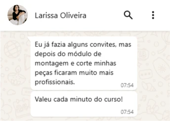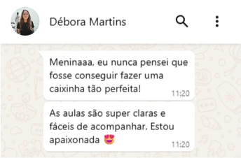 A maioria das alunas produz suas primeiras peças em poucos dias e consegue seus primeiros pedidos na mesma semana, usando o catálogo e as estratégias de venda ensinadas.